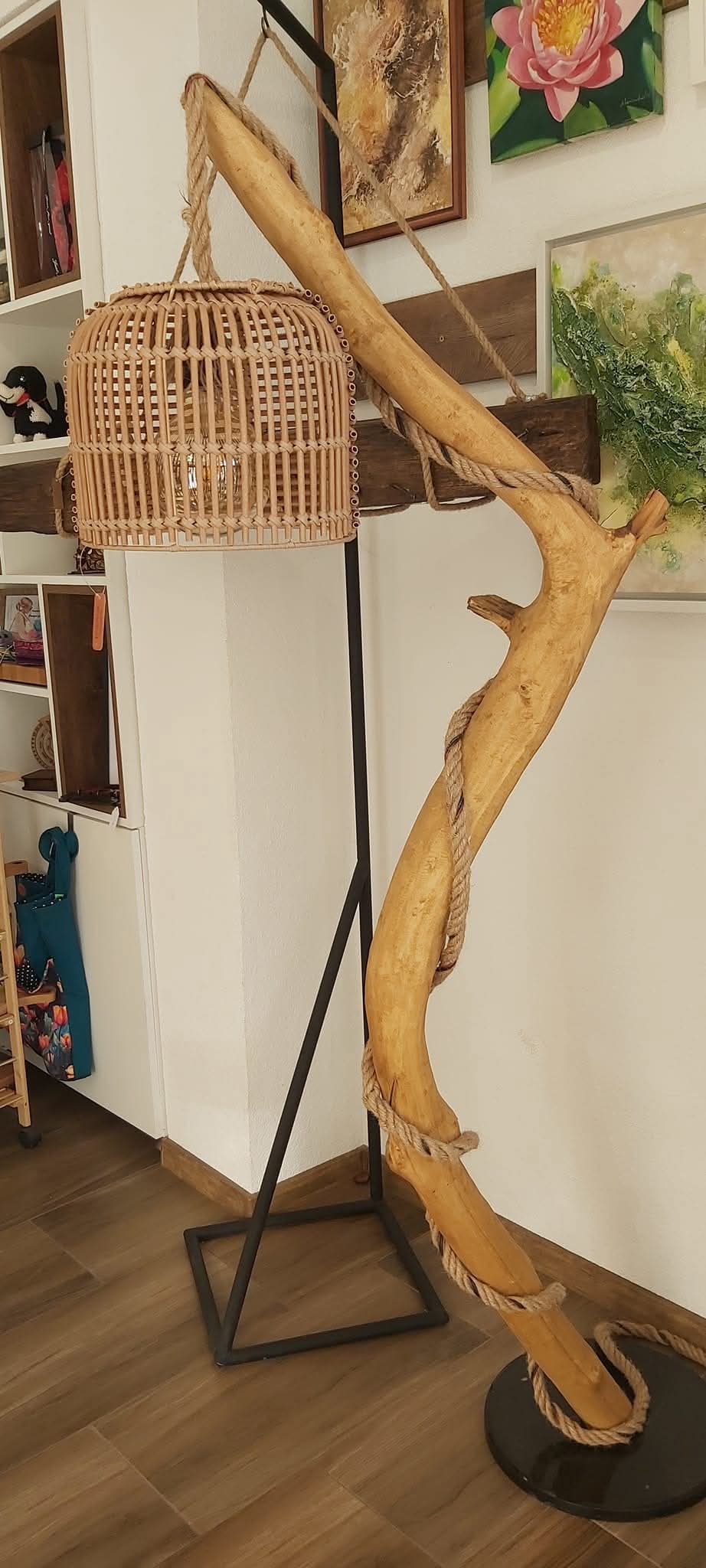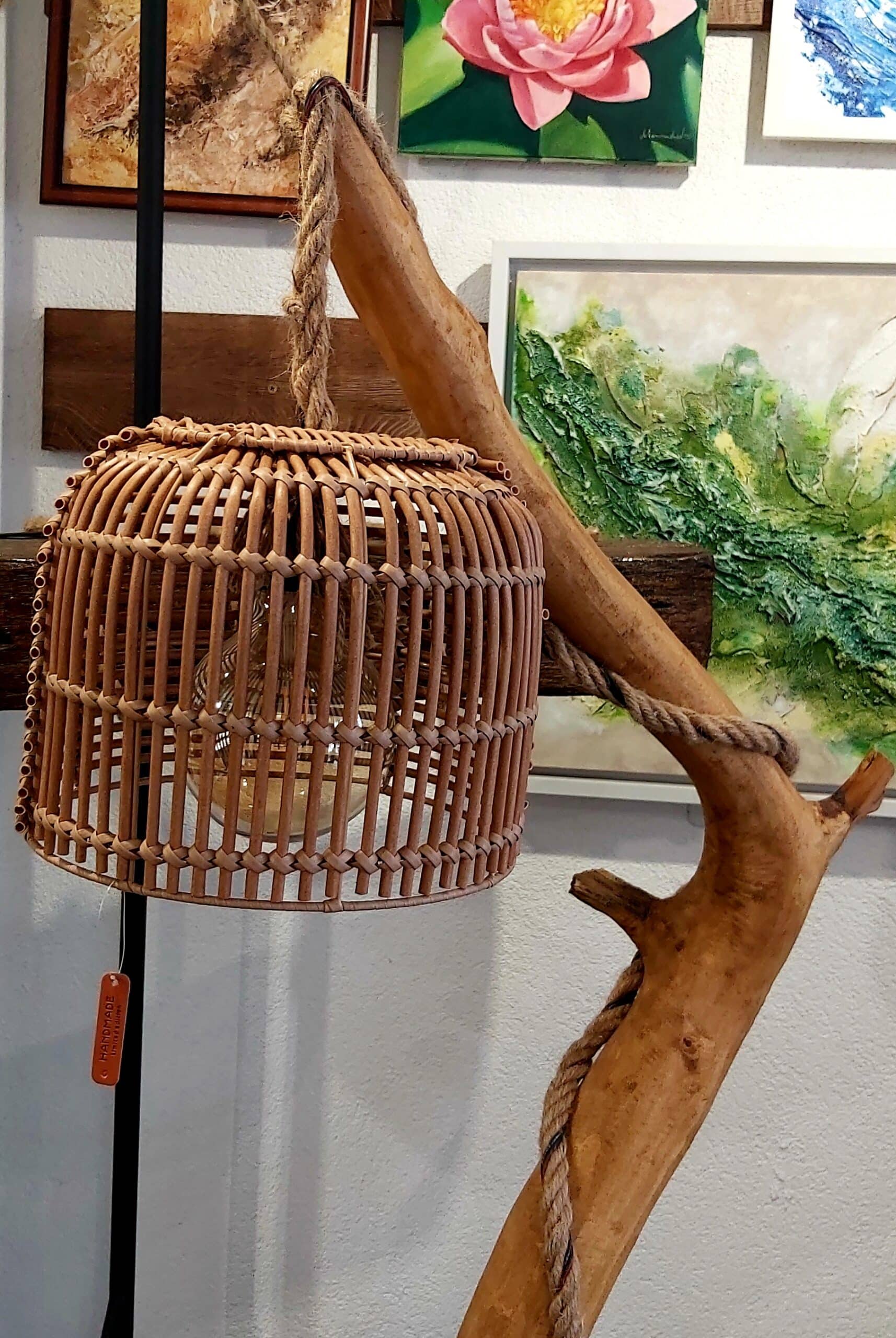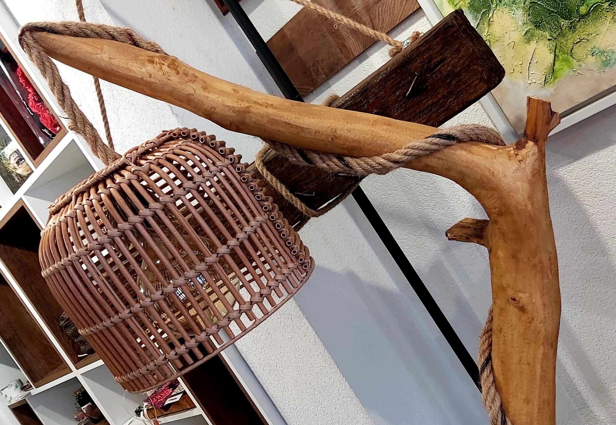 Ръчно изработена лампа, за направата, на която са използвани естествени материали- дърво